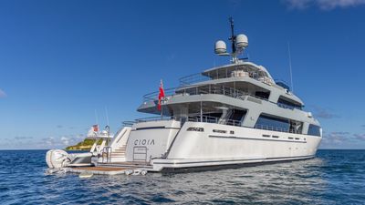 • Transformer stern garage with “Beach Club" and float-in storage for a Williams 505 Diesel Jet tender.